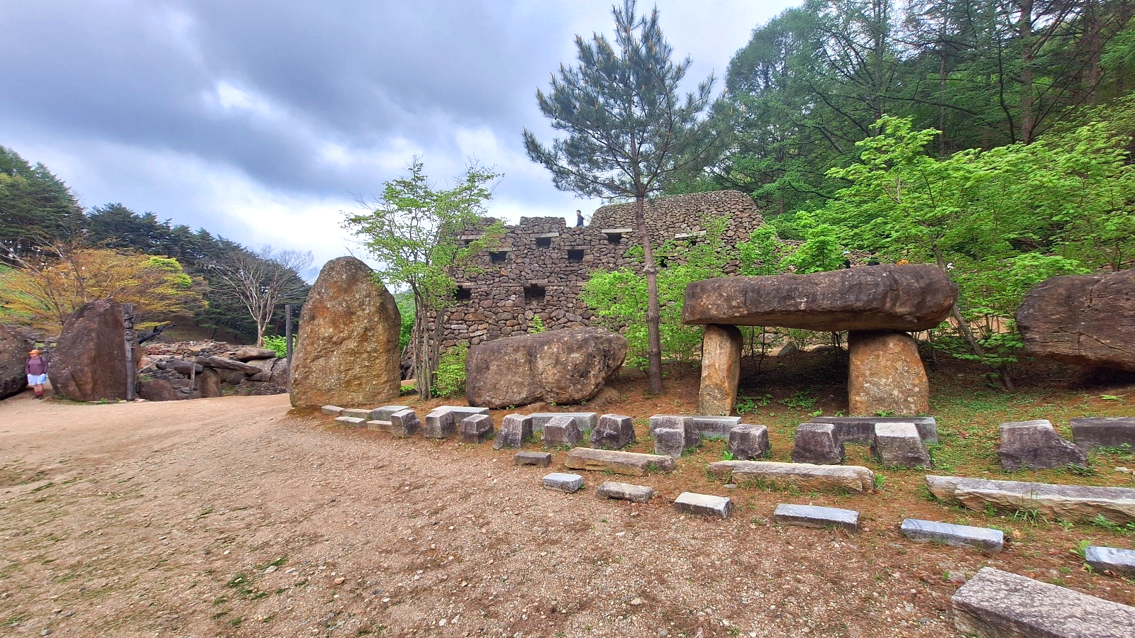 삼성궁의 매력 중 하나는 자연석을 이용한 조형물과 건축물입니다. 계단 하나하나, 담장과 성곽마저도 신중하게 쌓은 흔적이 느껴집니다. 마치 자연과 인간의 경계가 허물어진 듯한 느낌을 줍니다.