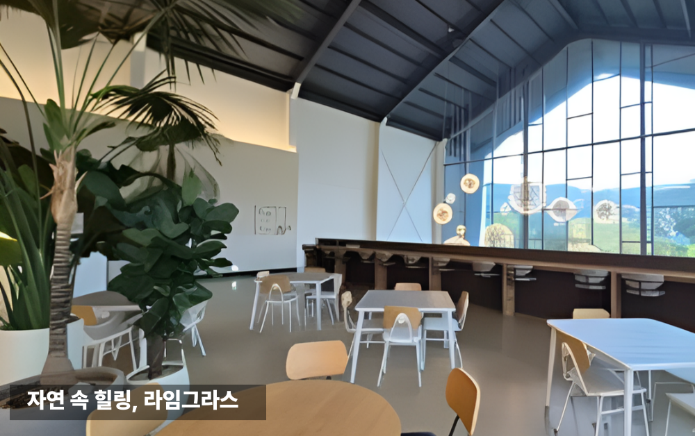 통유리창 너머로 푸른 정원이 한눈에 들어오는 라임그라스는 자연 속에서 온전한 휴식을 취하고 싶은 분들께 완벽한 곳입니다. 초록빛 가득한 풍경과 은은한 햇살이 어우러져 마음이 편안해지는 느낌을 줍니다. 마치 숲속의 작은 오두막에 온 듯한 기분을 만끽할 수 있습니다.