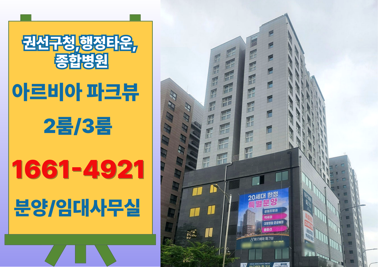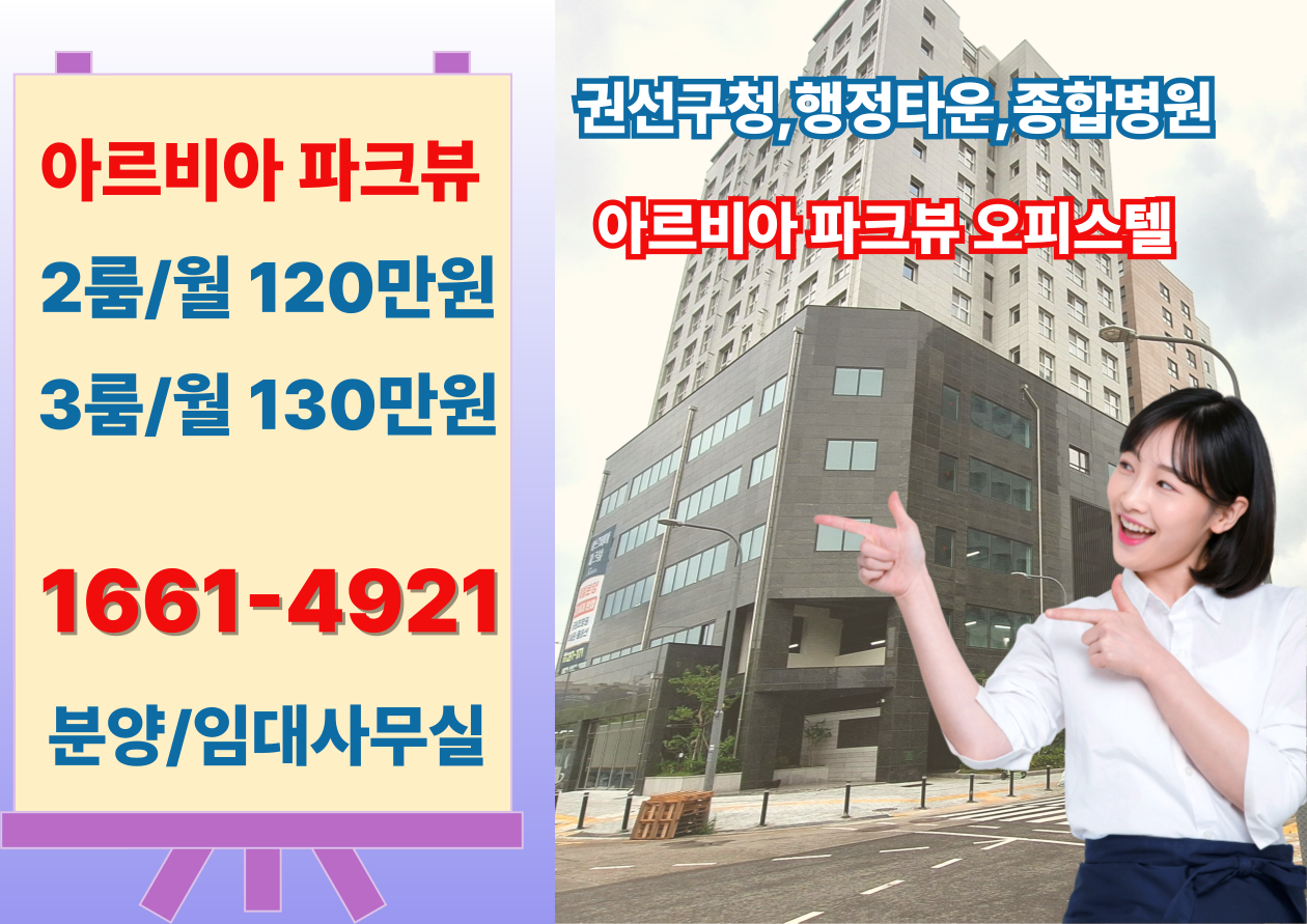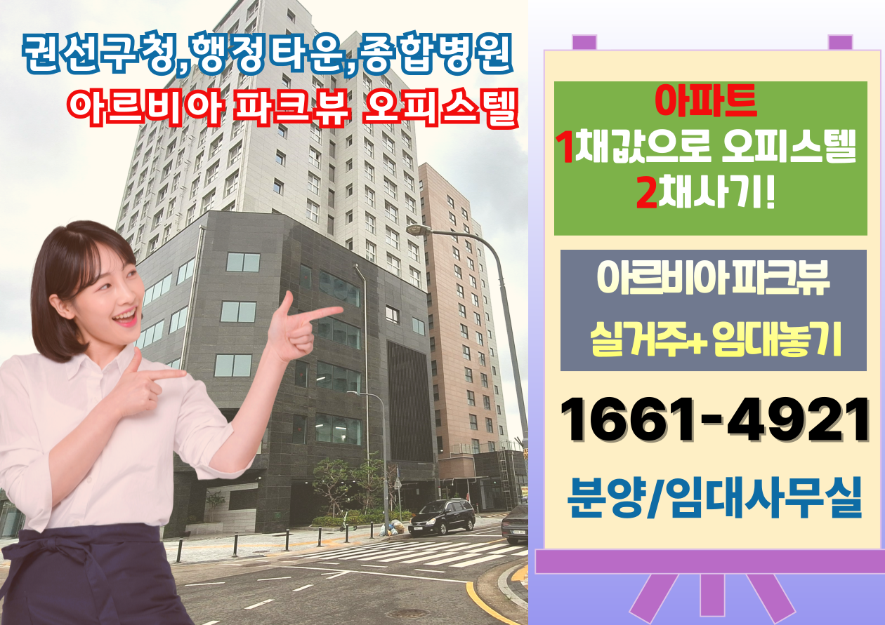 노후를 지켜주는 것은 거창한 수익률 계산이 아니라 매달 생활을 지탱하는 안정적인 현금흐름입니다. 아르비아 파크뷰 오피스텔은 권선구청 앞, 행정타운, 덕산종합병원 인근이라는 확실한 입지와 생활 인프라를 바탕으로 실거주 만족도와 임대 선호도를 동시에 확보할 수 있는 매력적인 대안입니다.