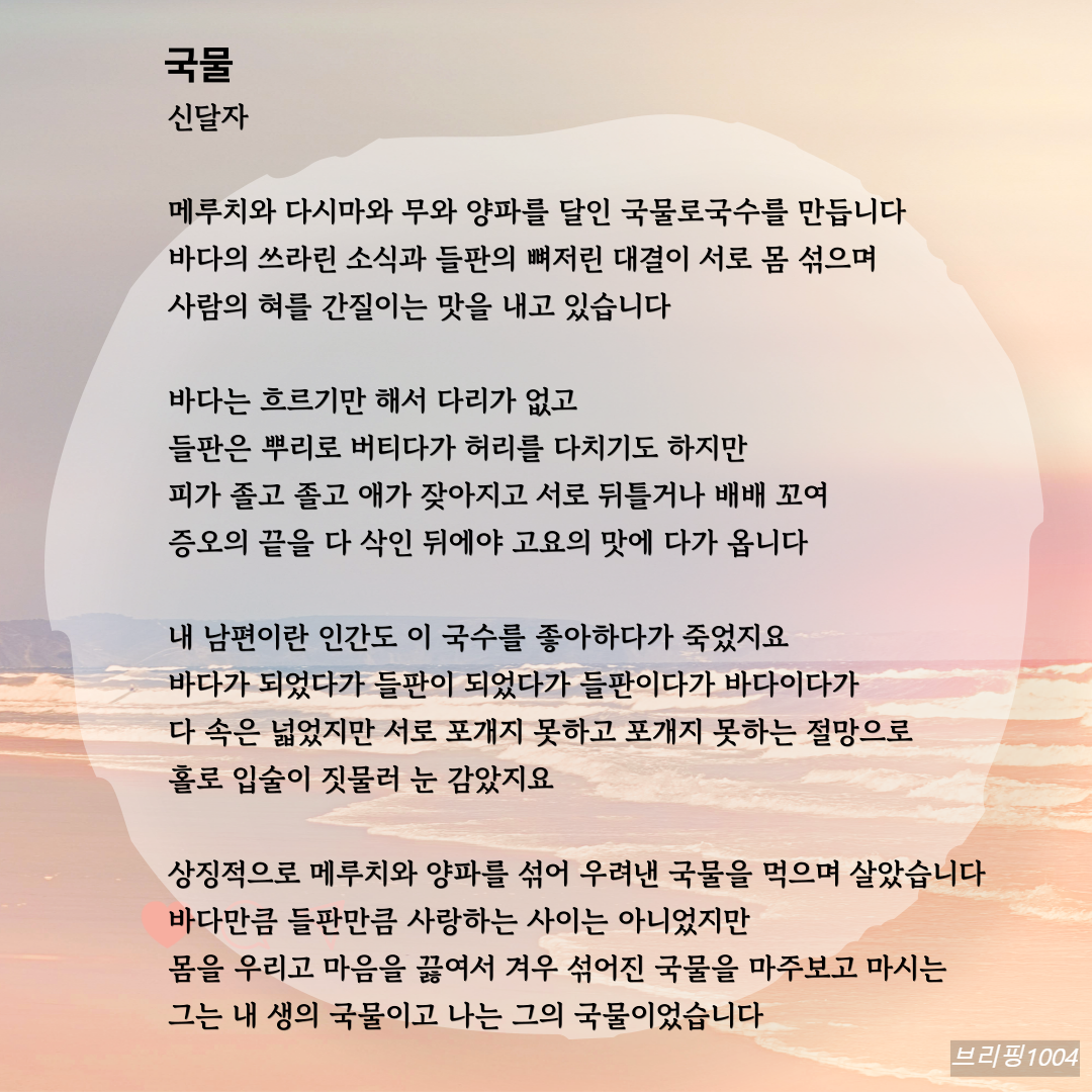 몸을 우리고 마음을 끓여서 겨우 섞어진 국물을  마주보고 마시는