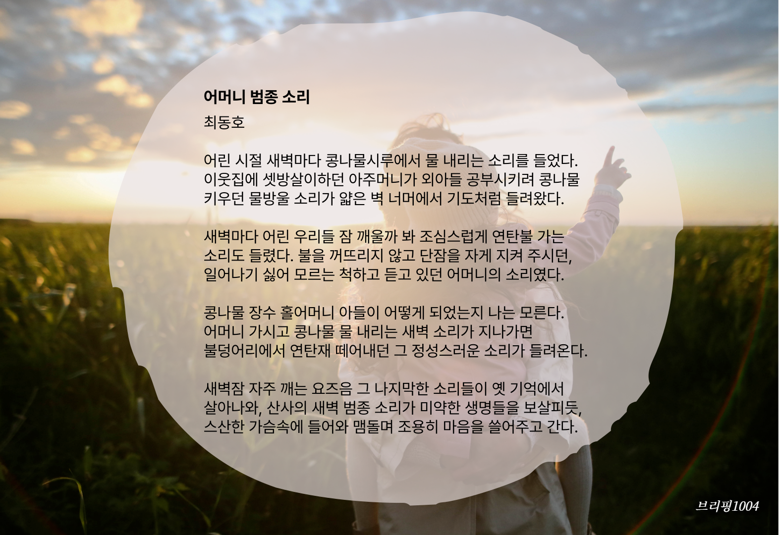 어머니 가시고 콩나물 물 내리는 새벽 소리가 지나가면